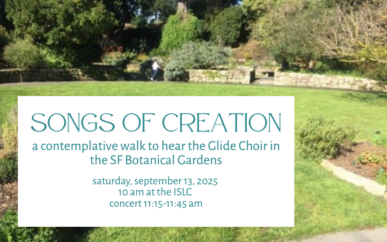 Join us to hear the songs of the city, the songs of the natural world, and the songs of people of faith as we make a contemplative walk through Golden Gate Park to the Garden of Fragrance to hear our brothers and sisters of the Glide Choir raise their voices in praise as part of Flower Piano 2025.